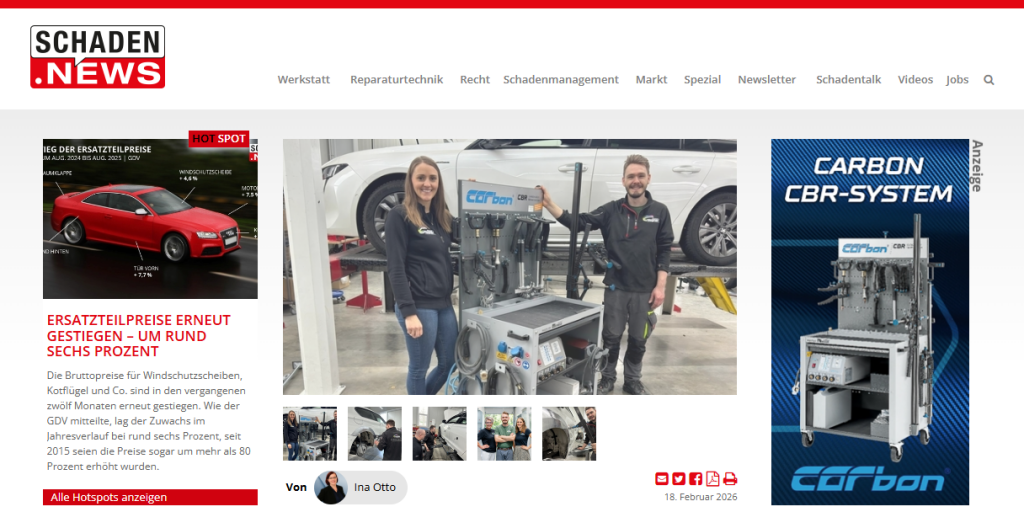Pressebericht auf schaden.news Anfang des Jahres 2026 hatten wir ein Interview mit Ina Otto zum Thema Instandsetzung von Karosserieteilen mit dem CBR-System und die Zusammenarbeit mit Carbon. Wir berichten wie sich unser Werkstattalltag mit der Unterstützung von carbon und dem Einsatz des CBR-System verändert hat und warum wir uns für mehr Instandsetzung entschieden haben. Der […]